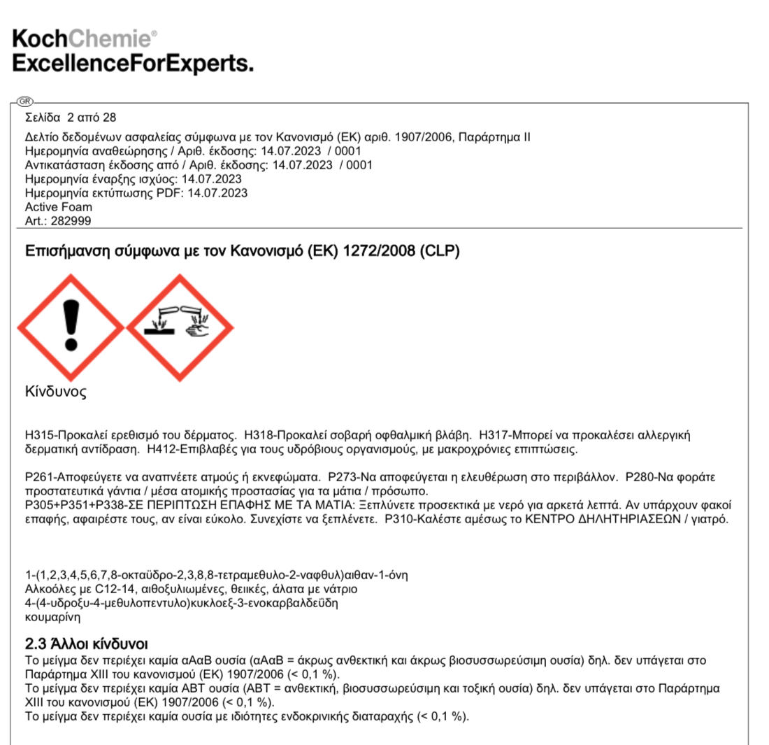 KochChemie ΕΝΕΡΓΟΣ ΑΦΡΟΣ ΚΑΘΑΡΙΣΜΟΥ ACTIVE FOAM (Af) (pH 9,5) 1lt