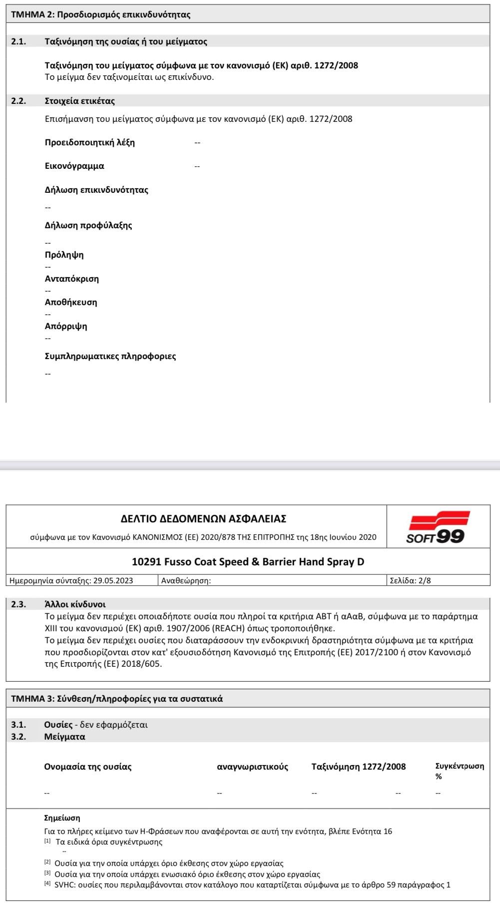 Το Fusso Coat Speed & Barrier Hand Spray είναι ένα προϊόν με εγγύηση χωρίς σκούπισμα! Το πλύσιμο του αυτοκινήτου πριν από την εφαρμογή δεν είναι πάντα απαραίτητο, γιατί το προϊόν μας όχι μόνο προστατεύει το αυτοκίνητό σας από ζημιές απωθώντας νερό και λάδι, αλλά και αφαιρεί σημάδια βρωμιάς, εάν δεν είναι τόσο επίμονα. Η επίδραση της ρητίνης φθορίου το καθιστά ιδανικό ώστε να σχεδόν ξεχνάμε το τελετουργικό πλύσιμο των αυτοκινήτων. Τόσο οι άνδρες όσο και οι γυναίκες μπορούν να χρησιμοποιήσουν αυτό το προϊόν για να επιτύχουν ένα εξίσου άψογο αριστούργημα, χωρίς κολλώδεις και δύσοσμες επιπτώσεις που παράγουν τα περισσότερα άλλα συμβατικά επιχρίσματα. Χωρίς πετρέλαιο.
